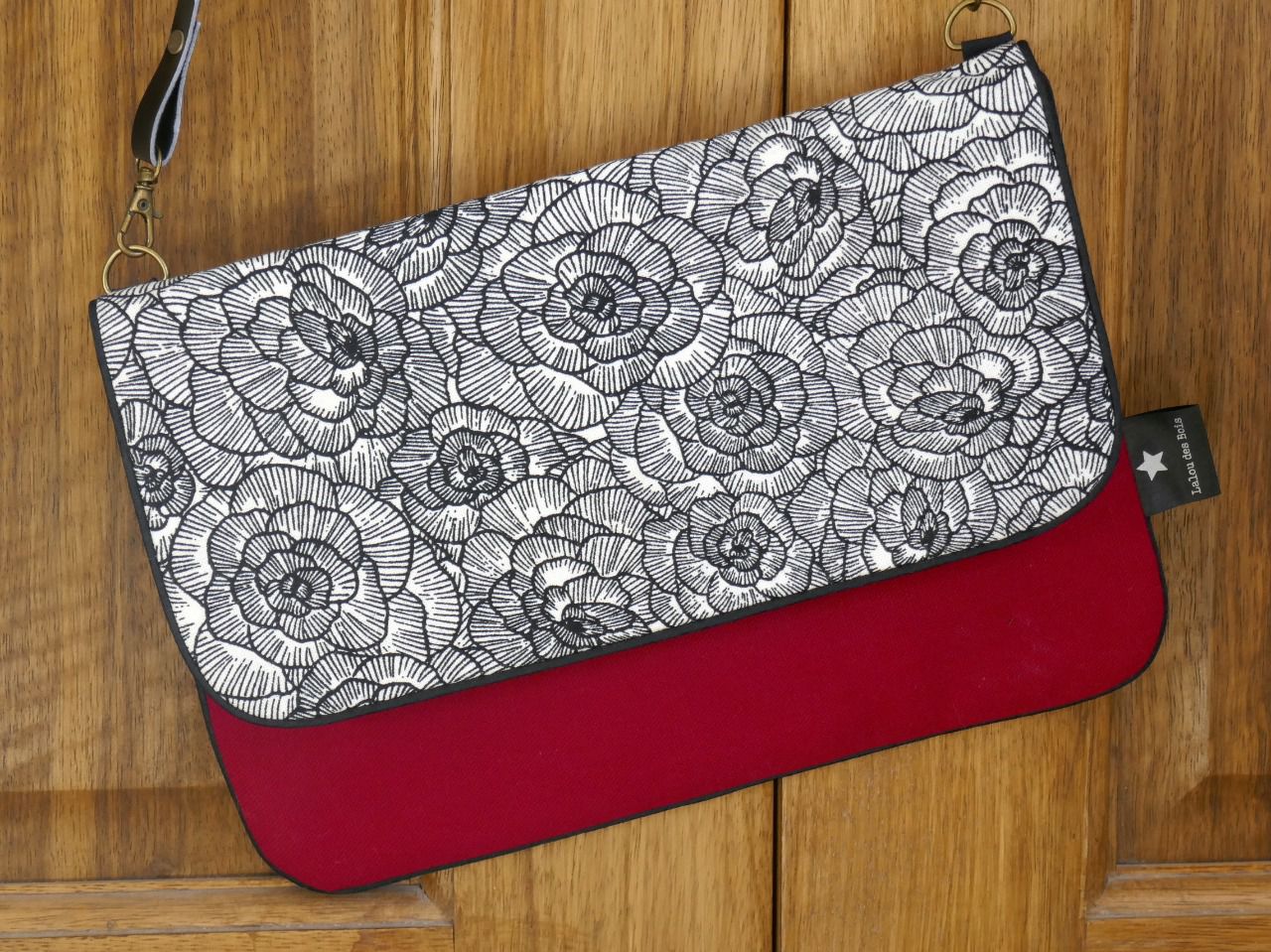Une belle pochette pour emporter l'essentiel, Roses graphiques N&B et rouge profond...